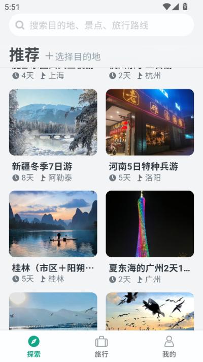 1. 智能目的地发现与灵感激发:功能入口通常为探索或发现页面。痛点在于用户往往受限于已知信息,难以发掘小众或深度旅行地。该功能通过主题旅行(如美食之旅、摄影路线、亲子研学)分类和基于LBS的附近宝藏推荐,结合精美的视觉内容与深度文化解读,降低用户发现新目的地的门槛,激发旅行灵感。
