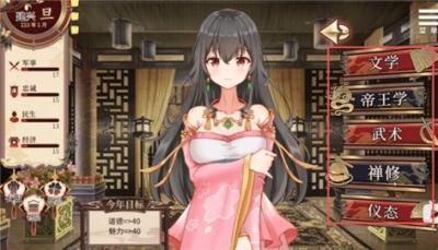 2. 主要养成目标: 玩家的终极目标是引导刘禅平安执政并达成你心目中的理想结局。短期目标则是完成每年年初设定的年度养成目标(武力达到60或国库收入提升10%),完成目标可获得丰厚奖励,为长远发展奠定基础。