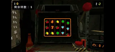 核心操作与目标: 玩家的主要操作界面就是那台核心老虎机。每轮开始,你需要投入一定数量的金币作为赌注,拉下拉杆。老虎机会滚动出不同图案的组合,根据组合的稀有度和赔率表,你将获得相应倍率的金币回报。屏幕上方清晰显示着你当前的总债务金额,而你的终极目标,就是在生命值(或类似的压力值/时间值)耗尽之前,赚取足够的金币,通过特定的还款机偿还全部债务,从而打开逃离的大门。