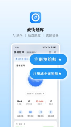 麦街题库是一款面向测绘与规划领域从业者及学员的专业化在线学习平台,通过系统化的题库资源、结构化课程体系与智能化学习工具,全面提升用户在注册测绘师、城乡规划师等相关职业资格考试中的备考效率与知识掌握水平。软件整合了海量习题、视频讲解、直播课程及社区互动功能,构建了一个集学习、练习、测试、交流于一体的综合性备考环境,帮助用户科学规划学习路径,精准定位知识薄弱环节,从而在职业资格认证道路上取得突破。