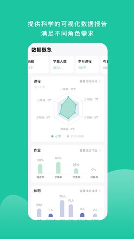 在学情分析与家校沟通方面,软件的核心功能是自动生成多层级报告。系统基于数据库,可一键生成班级整体体能概况报告、个体详细发展报告以及对比分析报告。教师可通过报告精准定位班级的薄弱素质项和个体的待提升领域,从而制定更具针对性的教学与训练计划。报告支持一键分享至家长端,使家长能够及时、直观地了解孩子的体育学习状况与体质水平,促进了家校在促进学生体育锻炼上的共识与协作,解决了以往体育教学家庭盲区的问题。