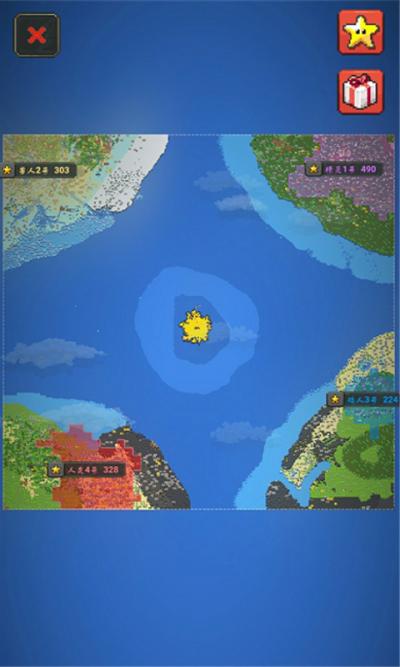 主要玩法与操作方式: 游戏主界面是一个上帝视角的广阔沙盒。屏幕下方或侧边是功能强大的环形创造工具栏,清晰分类了地形、水源、植物、动物、人类、文明、灾难、神器等元素库。操作方式极为直观:选择类别,点击心仪的元素(如一棵树、一只狼、一群村民),在世界任意位置点击放置。你可以使用笔刷工具大面积涂抹地形或植被,也可以使用力量工具(如膨胀塑造山丘,侵蚀雕刻河谷)精细修改地貌。对于已放置的单位,你可以点击进行更详细的设置,调整动物的攻击性、指定人类的聚集地、甚至瞬间点燃一片森林。
