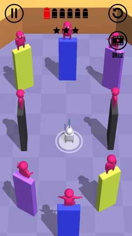 1. 动态地形与战术射击的完美融合:游戏打破了传统射击游戏的固定场景模式。战场中的圆柱、方柱等障碍物不仅是需要躲避的阻碍,更是可资利用的战术掩体。玩家需要实时判断,利用地形规避弹道,绕至侧翼或制高点发动反击。这种将跑酷的灵动与射击的精准相结合的设计,大大提升了游戏的策略深度和操作上限,比同类游戏更具沉浸感和挑战性。