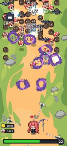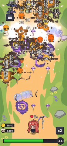 主要操作方式: 游戏操作极其简化。在战斗中,大部分时间你只需观察战局。当角色升级出现技能选择界面时,点击你心仪的技能即可完成装配。你可以通过点击屏幕控制角色进行短距离的移动闪避,以规避某些特殊史莱姆的弹道攻击或包围,这是游戏中为数不多的主动操作,用于应对高压局面。