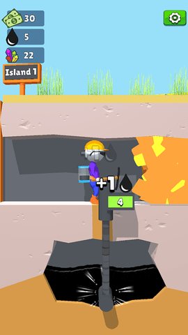 1. 极致的操作反馈与策略深度结合:游戏没有采用完全自动化的挂机模式,而是将手动挖掘作为主要交互方式。玩家需要滑动屏幕来控制火柴人矿工挖掘路径,每一次敲击岩壁的震动反馈、石油涌出的视觉效果都极为爽快。这种直接的操作感,让资源获取不再是后台数字的跳动,而是亲手劳动的成果。何时向哪里挖掘、如何布置采油设备与管道、如何分配资金用于工具升级或新技术研发,都需要玩家进行实时判断,实现了动手与动脑的完美平衡。