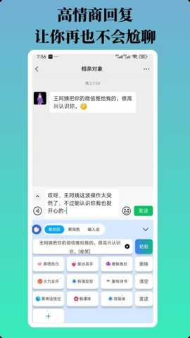 软件具备多模态人设适配能力。其后台算法内置了多种经过精细调校的语言模型,对应不同沟通角色与场合,专业严谨的商务人设、亲切温暖的关怀人设或幽默风趣的休闲人设。用户可根据实际交流对象与场景自由切换,系统会相应调整生成话术的词汇选择、句式结构与情感温度,确保输出内容与用户期望的社交形象保持一致,实现了沟通风格的个性化定制。