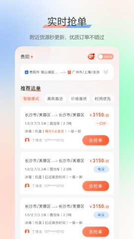 其一,智能抢单与订单筛选功能。司机可预设筛选条件,如运输距离偏好(短途/长途)、货物类型(普货/冷链/大件)、期望运费区间以及目标地域等。系统将根据预设条件对涌入的订单进行初步过滤,并以列表或地图模式直观展示。针对符合条件的优质订单,司机可启用一键抢单功能,极大缩短了响应时间,解决了传统模式下司机需要时刻紧盯信息、手动筛选比对导致效率低下和错过订单的核心痛点。