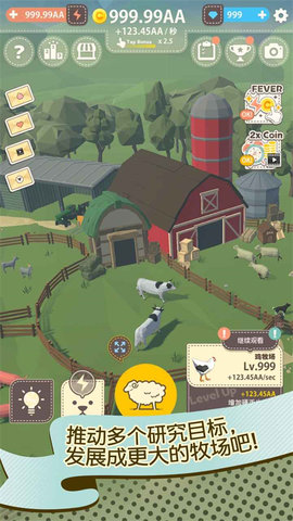 4. 研究与技术:游戏中设有研究开发系统(通常以科技树形式呈现)。通过投入资源进行研究,可以解锁全局性的增益效果,所有农场收入增加、离线收益时间延长、点击产出翻倍等,这是后期优化经营策略、突破收益瓶颈的关键。