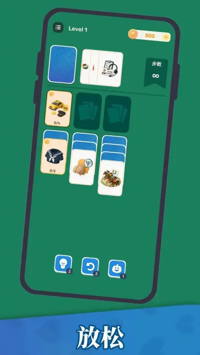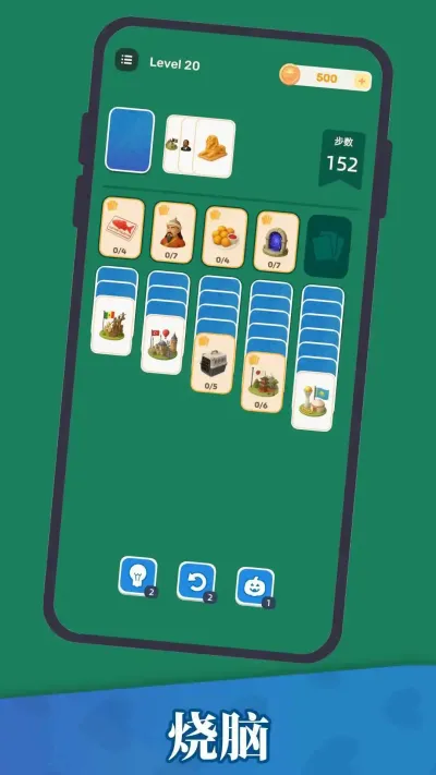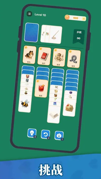 4. 步数限制: 屏幕上方会显示剩余的移动步数。每一次移动卡牌都会消耗一步。如何在有限的步数内完成整理,是游戏最大的挑战所在。