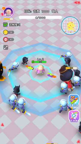 1. 基础操作与战斗: 玩家通过虚拟摇杆或点划屏幕控制角色移动。攻击时,手指在角色周围滑动会出现一条动态瞄准线,滑动的方向决定飞刀投掷轨迹,滑动的速度与长度则影响投掷的力度与射程。松开手指,飞刀即会射出。战斗中,屏幕上方会清晰显示所有敌人的等级标识(通常以数字或颜色区分)。玩家的核心目标是:在移动闪避高等级敌人攻击(尤其是带有红色预警范围的技能)的抓住时机,使用飞刀精准命中低等级或具有属性弱点的敌人。连续命中可积累连击数,获得伤害加成。
