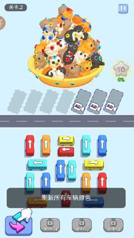 亮点四:缓解挫败感的贴心系统与沉浸体验。游戏充分理解了高难度解谜可能带来的挫败感。一方面,它提供了撤销和重置功能,允许玩家回溯步骤,大胆尝试不同思路;另一方面,内置的提示道具或随机打乱车辆顺序的功能,能在玩家真正卡关时提供破局思路,而非让人绝望。加之简洁明快的界面、贴合主题的音效,共同营造了沉浸感十足又友好舒适的游戏体验。