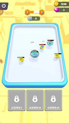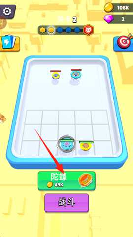 核心操作与目标: 游戏的核心玩法是在限时竞技场中,通过操控陀螺移动、碰撞对手以及合成进阶,最终存活下来并击败所有对手。基本操作非常直观:单指滑动屏幕即可控制所选陀螺向指定方向移动。当两个相同等级(如两个1级)的陀螺接触时,它们会自动合成为一个更高等级(2级)的新陀螺,其属性和外观都会得到显著提升。玩家的主要目标是:在陀螺转速随游戏时间不断加快的压力下,生存并合成出高等级陀螺,利用它们击败其他陀螺(将对手撞出场地或使其停止旋转)。