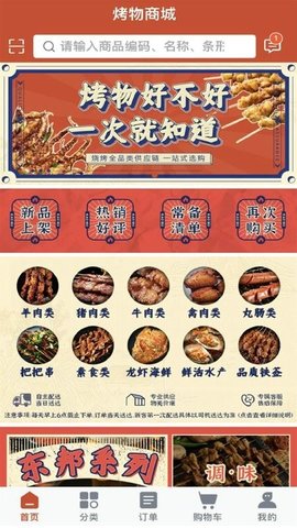烤物软件的功能模块围绕选、购、送、管四大核心环节构建,每一功能均针对烧烤食材采购中的特定痛点设计,提供专业化、高效率的解决方案。