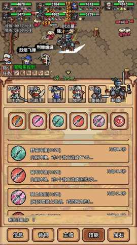 操作方式: 游戏大部分时间以放置和操作为主。在主界面,玩家可以轻松查看英雄状态、装备武器、学习技能(如连续攻击、伤害增强等针对性技能)、以及编成探险队伍。派遣冒险只需在地图上选择区域并点击出发即可。当遇到特殊事件或Boss战时,游戏会给出提示,玩家可以手动选择释放英雄特技的时机,或临时调整战术,这构成了游戏最主要的互动操作点。