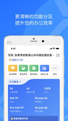 第二,动态实时房态与多维度数据看板。软件提供图形化(如房态图、甘特图)与列表式相结合的实时房态总览,不仅清晰展示每间客房的当前状态(如空净、住人、脏房、维修、锁定),还集成了今日预计抵店、今日计划离店、当前在住等关键运营指标。管理人员通过一个界面即可全局掌控酒店的接待容量与压力分布,为精准排房和人员调度提供直观依据。可自定义配置的数据看板将出租率、平均房价、RevPAR(每间可售房收入)、渠道贡献占比等核心经营数据以图表形式动态呈现,实现了经营状况的可视化监控,助力快速决策。