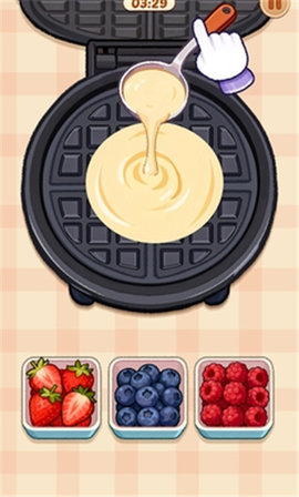 2. 跟随指引进行交互操作:进入实际操作界面后,屏幕下方或侧边会以图标序列的形式,清晰展示出当前步骤所需的食材或厨具。玩家需要按照顺序,先点击选取正确的物品,根据屏幕中央出现的手势提示(如点按、滑动、画圈、长按等)在指定区域进行操作。点击面粉袋和鸡蛋,将它们拖入碗中;用手指在碗上画圈进行搅拌;再将面糊拖到煎锅上,通过长按来控制煎炸的时长。