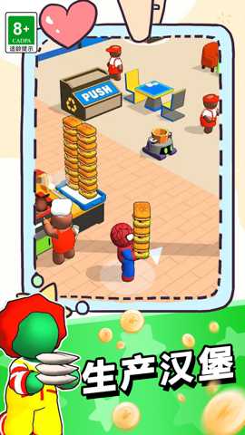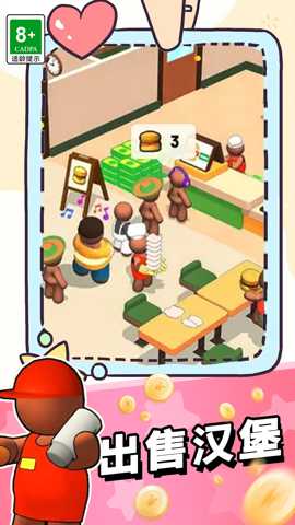 主要玩法与操作方式: 游戏主界面是玩家的餐厅。在经营模式下,玩家通过点击进行各类管理操作:雇佣和培训服务员、厨师等员工;升级厨房设备以提升效率;设计和扩建餐厅区域以容纳更多顾客;研究市场动态并调整菜单价格与组合。当进入烹饪模式后,界面将切换到厨房第一视角。此时,订单会陆续出现在屏幕上方,玩家需要根据订单要求,从食材区选取对应材料,通过一系列手势操作完成烹饪:滑动手指模拟切菜动作,在规定圆圈内快速点击控制火候,按照特定轨迹滑动进行翻炒,将菜品拖拽至精美的盘中进行摆盘。操作越精准、速度越快,菜品的完美度评分就越高,获得的金币与经验奖励也越丰厚。