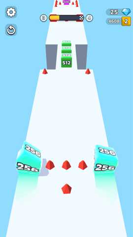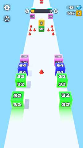 2. 动态资源收集阶段(跑酷阶段): 关卡开始后,敌人波次会倒计时出现。在这段宝贵的时间内,玩家需操控英雄方块在地图上快速移动。通过滑动屏幕控制方向,避开地图上的天然障碍物(如深坑、熔岩),并主动触碰收集散落的资源方块。这些资源方块会附着在英雄身后,形成一条尾巴。收集的越多,后续可动用的建材就越丰富。此阶段考验路径规划与操作敏捷性。