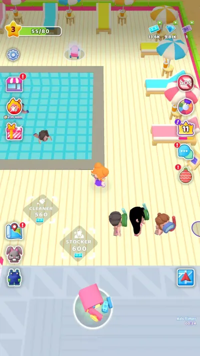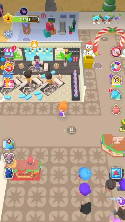 4. 平衡团队配置: 根据已解锁的服务项目和客流量分析,合理配置发型师、美甲师、理疗师的比例,避免某些服务岗位排长队而其他员工闲置,优化运营效率。