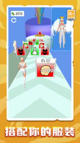 亮点一:独创任务驱动型时尚收集玩法。 游戏打破了跑到终点即胜利的传统模式,为每个关卡设定了明确的服饰收集目标。玩家需要在高速奔跑中眼疾手快,精准获取散落在赛道上的特定上衣、裙子、鞋子乃至发型。这不仅增加了游戏的目标性和策略性(需要规划收集路线),更将换装养成的乐趣无缝嵌入到紧张的跑酷过程中,满足了玩家对美与收集的双重追求。