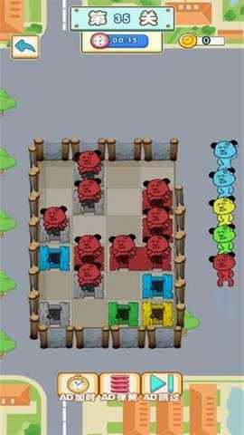 主要操作方式:游戏全程通过触屏点击和拖拽完成。进入关卡后,玩家需要仔细观察场景布局:通常画面中会有一个或多个标有特定颜色或图案的厕所门/标志,以及一群颜色各异的座位(可能是马桶、板凳或其他形态)。玩家的核心操作就是点击并拖拽焦急的熊猫人,将其放置到与厕所标志要求相匹配的颜色的座位上。如果选择正确,熊猫人会顺利解决问题并通关;选择错误,则会触发各种搞笑失败动画,如坐错位置被弹飞、马桶爆炸等,需要重试。