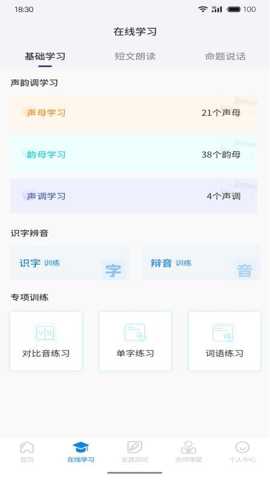 悦尔普通话的核心特色在于其构建了一个基于语言学理论与考试大数据分析的闭环学习系统。软件实现了题库资源的精细化分类与结构化呈现。其题库并非简单的题目堆砌,而是严格依据普通话水平测试实施纲要的评分标准进行构建,覆盖了单音节字词、多音节词语、朗读短文及命题说话四大核心模块。这种分类方式使用户的练习能够高度对标真实考试的评分维度,单音节练习着重于声、韵、调的准确性,而命题说话练习则侧重于词汇语法规范度、语言流畅度与自然度。用户可根据系统提供的阶段性测评报告,精准定位自身在某个特定维度(如平翘舌音、前后鼻音)的缺陷,从而实现从漫灌式练习到滴灌式强化的转变。