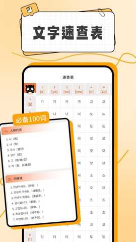 5. 离线词典与速查工具:内置的词典支持韩中、中韩双向查询,并具备单词变形识别和例句联想功能。独特的速查表功能允许用户将复杂的语法总结表、音变规则表等以图片形式保存并快速调用,成为用户随身携带的语法手册,极大提升了学习与复习的便携性。