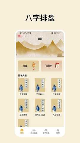 水墨先生八字排盘是一款基于传统命理学与国学文化开发的数字化工具软件,其核心功能在于为用户提供精准、便捷的八字命盘排算与深度命理分析服务。用户仅需输入准确的出生年月日时信息,软件即可依据严谨的干支历法及命理算法,自动生成包含年柱、月柱、日柱、时柱在内的完整四柱八字,并进一步推排出大运、流年、十神、神煞等关键命理要素。除了核心的八字排盘功能,整合了万年历查询、健康养生知识库、国学典籍阅览以及电子木鱼等辅助模块,为用户提供一个集命理咨询、文化学习与身心调节于一体的综合性传统文化应用平台,帮助用户在了解自身命理特质的汲取传统智慧,规划生活与健康。