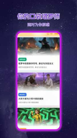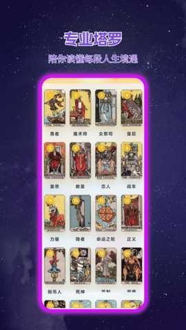 塔罗会的核心特色在于其系统化的知识架构、高度个性化的解读引擎以及场景化的应用设计。软件构建了严谨的塔罗牌知识体系,不仅涵盖78张标准韦特塔罗牌(包括22张大阿卡那牌与56张小阿卡那牌)的权威释义,更深入阐释了每张牌所对应的原型意象、心理隐喻及历史演变。对大阿卡那牌命运之轮的解读,会结合其象征的周期律动与命运无常的哲学概念,而非停留在简单的吉凶判断;对小阿卡那牌中权杖、圣杯、宝剑、钱币四组牌的系统解析,则紧密关联火、水、风、土四大元素,分别对应行动力、情感、思维逻辑与物质资源等不同人生领域,为用户提供多维度的分析框架。