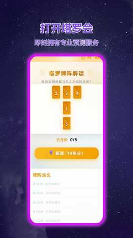 其三,自定义问题与牌阵占卜功能。这是软件的核心咨询功能,用于解决用户在特定人生议题上的困惑。用户首先清晰定义自己的问题(如我该如何改善当前的职场人际关系?),随后在引导下选择适合的牌阵。抽牌过程模拟实体牌的洗牌、切牌仪式感,增强用户的专注与连接。解读报告则严格按照牌阵布局生成,对每个位置的牌进行独立分析后,再进行牌与牌之间的关联性综合解读,最终形成一份涵盖背景、核心矛盾、潜在发展、建议与警示的完整咨询报告,有效替代了线下寻找占卜师的需求。