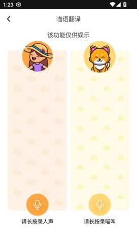 在技术集成性方面,软件的核心特色是其基于声纹分析与模式识别的猫语翻译引擎。该引擎并非进行简单的语言直译,而是通过采集和分析大量猫咪在不同情绪状态(如饥饿、寻求关注、紧张、愉悦)下的叫声样本,建立声学特征与潜在意图之间的关联模型。当用户录制猫叫声后,算法会提取其频率、音调、持续时间及节奏等关键声学参数,并与模型库进行比对,最终输出对猫咪当前情绪或需求的可能性推断。这一过程融合了动物行为学的研究成果与信号处理技术,为用户理解宠物提供了基于数据的参考视角。
