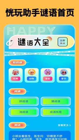 恍玩助手是一款集益智谜语、成语互动、多媒体处理与生活管理于一体的综合性移动应用软件,通过多样化的功能模块满足用户在思维锻炼、娱乐休闲及日常事务规划等多方面的需求。其核心设计理念在于将传统文化中的文字游戏与现代数字工具相结合,为用户提供一个既能活跃思维、又能提升效率的数字化平台。软件通过结构化的功能分区,将看似分散的猜谜、视频处理、纪念日管理等功能有机整合,实现了从娱乐到工具的无缝衔接,帮助用户在轻松的氛围中获得知识、管理生活并处理多媒体内容。