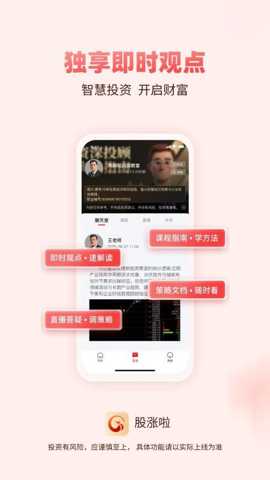 股涨啦是一款专业的金融投资平台,为用户提供全面的股票资讯、深度的市场分析以及系统的投资教育服务,整合了实时行情、专业观点、互动社区及在线课程等核心模块,帮助投资者在复杂多变的市场环境中及时获取关键信息、学习投资知识、优化决策过程,从而提升个人的投资能力与风险管理水平。