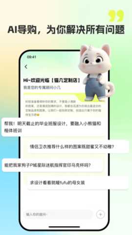 猫几软件的具体功能模块围绕创意生成、设计优化与商品实现三个核心环节构建,系统性解决用户在个性化消费中面临的一系列痛点: