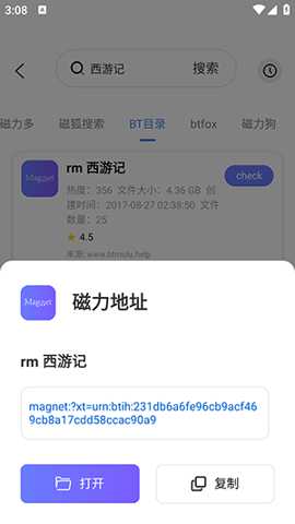 在资源发现环节,核心功能是多引擎聚合搜索。用户在主界面输入关键词后,软件会向所有已配置的磁力索引站点发起查询请求。针对信息过载且来源分散的痛点,此功能将原本需要打开多个网站、重复进行搜索的操作简化为一步,并提供了统一的视图。搜索结果会清晰展示资源名称、文件大小、种子数量、热度指标等关键信息,辅助用户判断资源质量。