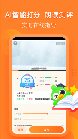 2. 多维度的AI语音评测与反馈系统:这是软件的核心技术功能。用户完成配音后,系统通过语音识别和自然语言处理技术,对录音进行多维度分析。反馈不仅限于正确或错误,而是具体到声母、韵母的发音清晰度,语调的抑扬顿挫,句子的停顿节奏,以及整体情感表达是否贴合文意。系统会以可视化图表(如音高曲线对比)和文字评语的形式呈现结果,并高亮标出需要改进的具体字词。该功能解决了传统学习中反馈滞后、不够具体的问题,提供了即时的、专业级的发音矫正,对于提升口语准确性和语言表现力至关重要。