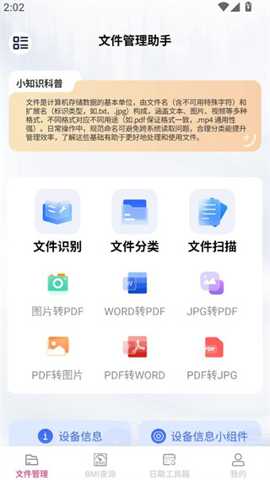 云畅文件助手是一款综合性的移动端文件管理解决方案,它深度融合了光学字符识别(OCR)、智能文件分类、格式转换、存储分析及系统工具等核心模块,为用户构建一个高效、自动化、一体化的数字文件处理环境。软件不仅能够将物理文档快速数字化并转换为可编辑、可分享的电子格式,还能对设备内部存储进行深度梳理与智能管理,有效解决了用户在文件获取、整理、查找和存储空间优化等方面的一系列痛点,显著提升了个人及轻度办公场景下的信息处理效率。