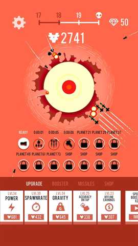 星球轰炸机的核心玩法清晰而富有层次,玩家的主要目标就是利用各种手段高效、华丽地摧毁眼前的所有星球。