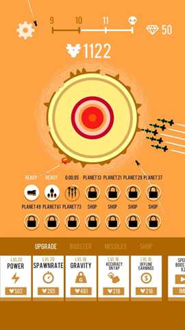 亮点二:丰富多样的导弹系统与策略性升级。 游戏绝非无脑点击,它提供了一套丰富的军火库。从基础的破甲弹到范围伤害的集束炸弹,从延时引爆的钻地弹到能引发链式反应的中子导弹,每种导弹都有其独特的属性和适用场景。玩家需要根据星球的结构(如是否有坚硬外壳、内部是否脆弱)来选择合适的武器。更重要的是,所有导弹都可以通过游戏内获得的资源进行升级,提升其伤害、爆炸范围或附加效果。这种轻度策略元素的加入,让简单的轰炸过程也充满了思考和成长的乐趣。