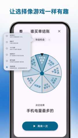 3. 概率化与趣味化输出机制:针对随便心态或低风险决策,软件提供掷骰子、转盘、抽卡等随机决定功能。其解决的核心痛点是用户不愿或无需投入精力进行深度分析,只需一个快速、公平且具仪式感的结果来推动行动。这些功能均配有可调节的随机种子和选项权重,用户可为心仪选项设置更高权重,在随机中保留一定的倾向性控制。
