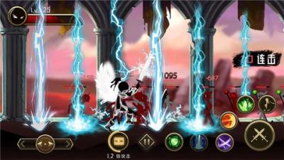 主要操作与战斗: 游戏采用经典的虚拟摇杆与技能按键布局。左侧摇杆控制火柴人移动(包括行走、奔跑和闪避),右侧分布着普通攻击键、跳跃键以及若干个技能键。战斗的核心在于移动-攻击-技能的衔接。普通攻击可形成连段,技能消耗能量或拥有冷却时间,需要合理分配。高级技巧包括利用闪避的无敌帧规避致命伤害、跳跃取消攻击后摇、以及将敌人击飞至空中进行连击等。面对不同敌人时,需快速识别其攻击前摇,采取格挡、闪避或打断策略。