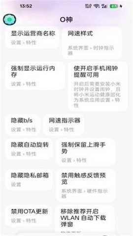 2. OTA更新管理功能:系统自动更新的强制性是许多资深用户的困扰。痛点体现在:自动更新常在夜间或使用移动数据时悄然进行,消耗流量;新版本可能带来不兼容、耗电增加或用户不喜欢的UI改动;回退版本过程复杂且存在风险。O神模块提供的禁用功能,实质上是冻结了系统更新服务组件。用户启用后,系统设置中的软件更新入口将保持为当前版本状态,不再接收、下载或安装任何OTA包,从而将系统版本的控制权完全交还给用户,保障了系统环境的绝对稳定与可控。