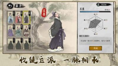 核心操作与目标:玩家的终极目标是扩大自己思想的影响力,可以通过多种途径实现:一是传道,即主动发起或参与辩论,通过上述卡牌对战玩法说服他人,提升个人声望与流派认同度;二是理政,若获得官职,可通过处理政务事件(同样可能涉及卡牌选择)来实践思想,影响国运;三是著书,收集散落各处的思想碎片,合成完整经典,可永久提升特定卡牌效能或解锁新能力;四是授徒,培养弟子,他们可以协助你处理事务,并在你无法亲自到场时代表你传播思想。