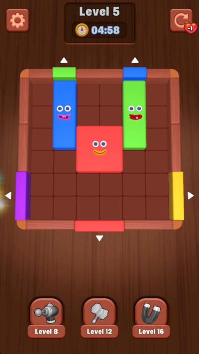 - 基础移动解谜:理解每个色块的移动规律,规划最优路径。