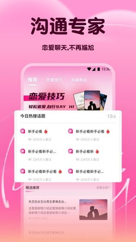 情境化范例检索与解析功能:该功能是Safew的核心数据库接口。用户可根据具体的社交情境(如职场社交-与上级的非正式交流、线上交友-从匹配到首次深度聊天、朋友间-安慰情绪低落的朋友)进行精准检索。每个范例不仅提供对话文本,更附带解析层,阐明每句话的沟通意图(如:表达共情、提供价值、试探兴趣)、潜在的心理效应以及可能的对方回应预判。这解决了用户在具体场景下不知从何说起或担心说错话的痛点,将模糊的焦虑转化为有章可循的沟通方案。