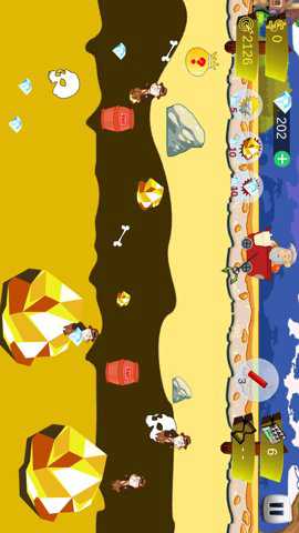 玩家主要目标与流程:1. 资源识别与收集:玩家需要快速识别矿层中出现的各类物品。优先收集高价值的大金块和钻石,它们是获取高分的核心。2. 风险规避:时刻警惕炸药桶,一旦钩子或回收中的物品触碰到它,就会引发爆炸,损失钩子上的所有物品并可能造成短暂的操作停滞。对于小猪,需要预判其移动轨迹进行捕捉,有时它会挣扎影响回收。石头价值低且沉重,应尽量避免钩到,以免浪费宝贵的操作时间。3. 道具策略性使用:在关卡中,玩家会获得或在商店购买辅助道具。当钩到炸药桶或不想娶的低价值物品时,立即使用炸药将其炸掉并快速收回钩子;在争夺激烈或需要快速积累资源时使用生力药剂;决定本局专注收集钻石或石头时,提前使用相应的收藏书来提升收益;在开启神秘布袋前使用幸运草,以期获得更强大的道具。4. 连续挑战与深度探索:完成当前矿层的收集目标(通常为达到一定分数)后,可以解锁进入下一层更深的矿洞,面对更复杂的物品布局和更高的挑战。玩家需要管理好每次下钩的风险与收益,规划道具使用时机,以在有限的尝试中达到最大深度和最高分数。