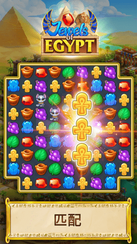 官方故事将我们带回了那个尼罗河定期泛滥、众神信仰昌盛的时代。一场未知的灾变让繁荣的埃及帝国陷入沉寂,伟大的建筑被风沙侵蚀,璀璨的文明光辉日渐黯淡。玩家扮演的,是一位被古老预言选中的复兴者,肩负着唤醒沉睡文明的重任。你的旅程始于一片荒芜的沙丘,手中唯一的工具,便是蕴含神秘力量的珠宝棋盘——通过匹配棋盘上色彩斑斓的圣甲虫宝石、荷鲁斯之眼护符、生命十字章等具有埃及特色的符号,可以汲取远古的能量。