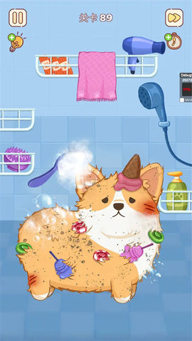 2. 清理爪垫: 玩家首先需点击选择湿巾或小刷子工具,拖拽工具到宠物脚掌的污渍处进行反复擦拭,直到污渍完全消失。